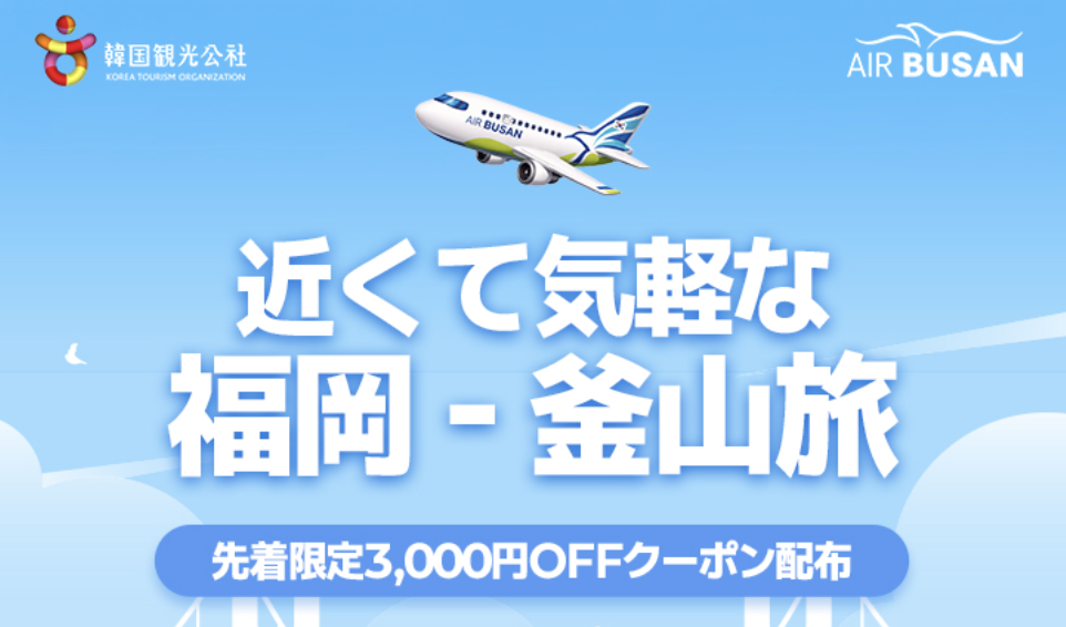 - 対象者: エアプサン会員のうち、福岡発往復便を購入する方。