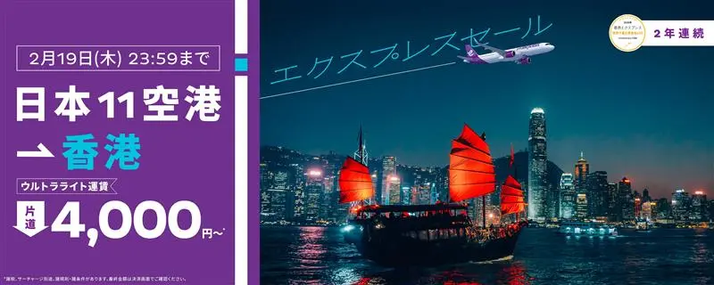 香港のLCC「HK Express」が、2025年8月29日(金)11:00~8月30日(土)23:59までの2日間限定で メガ エクスプレスセール を開催します。対象となるのは 東京(成田・羽田)発 ...