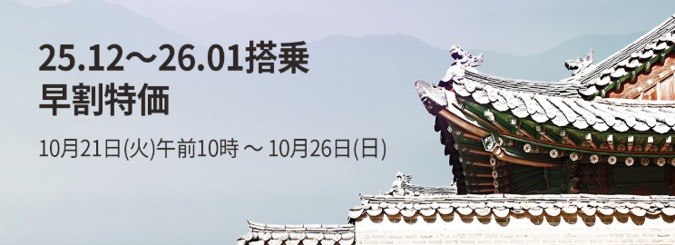 |  早割特価 | 10/21 10:00 〜 10/26 23:59 (12/1 〜 1/31) | 仁川 釜山 |