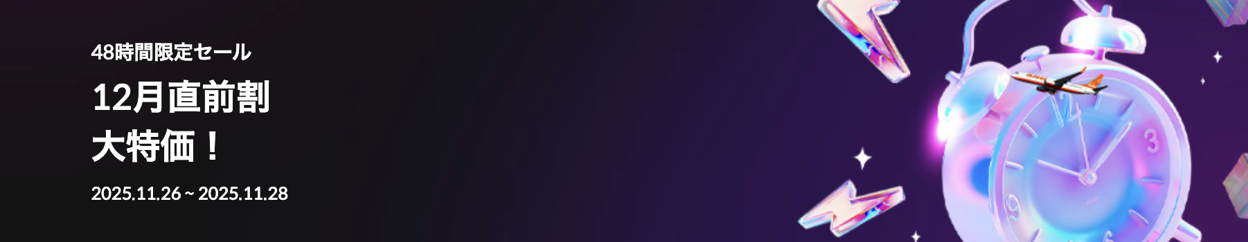 福岡・静岡・広島の3路線は 片道総額7,200円〜/9,330円〜 と圧倒的最安級。さらに、乗り継ぎで バリ/ダナン/シンガポール/チアンマイ 等へ2ヵ国旅も可能。新規会員登録で 最大5%割引+1,000P も獲得できます。冬の弾丸週末旅、年末の駆け込み旅行にも最適です✈️