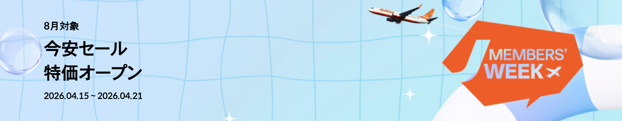 韓国のLCC、チェジュ航空(JEJU air)は、2026年4月15日より、8月搭乗分が一年で一番おトクになる「今安セール(Members Week)」をスタートしました。