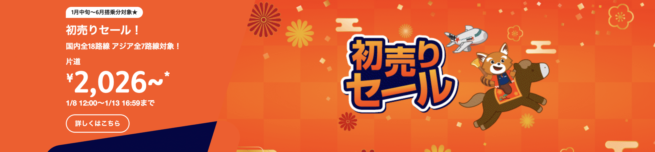 格安航空会社のジェットスター・ジャパンは、2026年の旅初めを応援する「初売りセール」を1月8日正午より実施します。