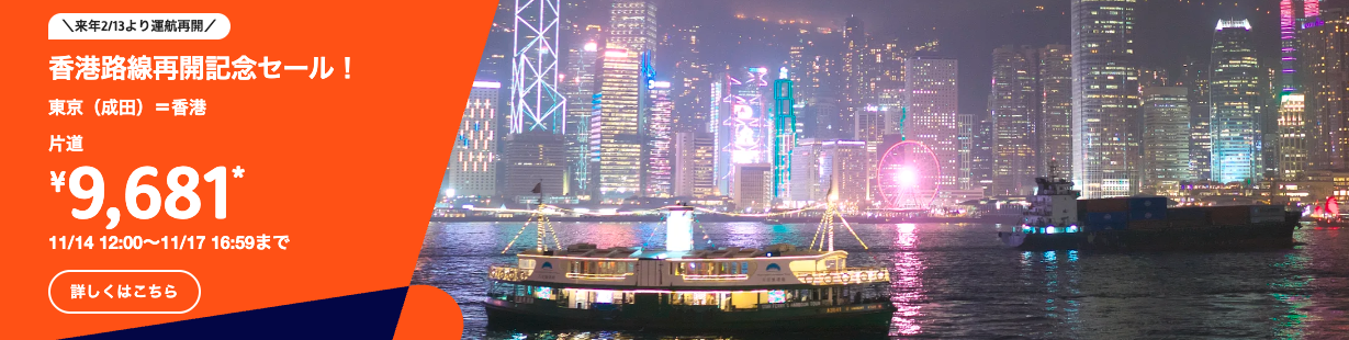 ジェットスターの香港線は、約3年ぶりの再開。成田―香港間を結ぶ便利な直行便が復活します。