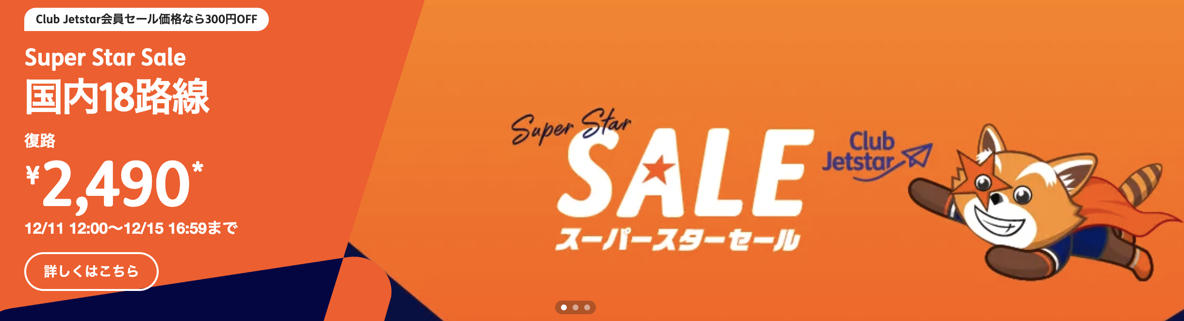 【2025年12月11日〜】Jetstar(ジェットスター)Super Star Sale【国内線 片道2,490円~】