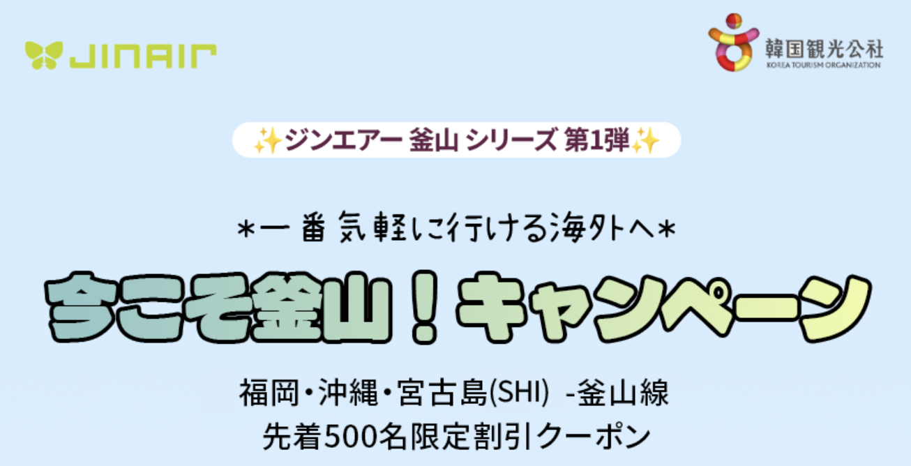 【2026年4月14日〜】エアプサン、成田・静岡発の釜山線限定で「3,000円割引クーポン」配布!さらに10,000ウォン相当の景品も