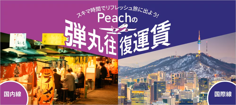 Peach Aviation(ピーチ・アビエーション)は、限られた時間でも“往復旅行”を可能にする新キャンペーン「弾丸往復運賃」を販売中です。