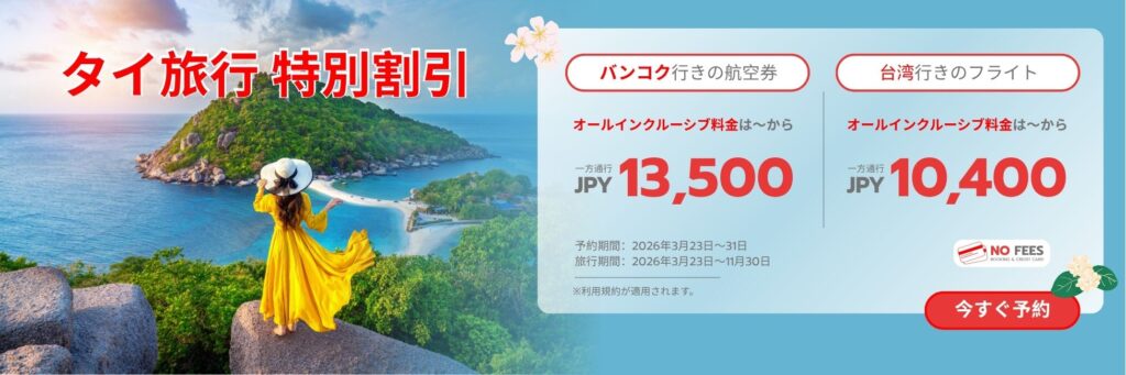| 公式サイト | https://www.lionairthai.com/en/Promotion/Special-Deal-to-Thailand?utm_source=website&utm_medium=bannerJP&utm_campaign=PRO_23-31MAR26&Country=JP&lang=JP |